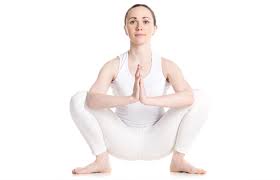 Ngồi xổm trên cả hai bàn chân, mông hạ thấp tối đa nhưng không chạm đất