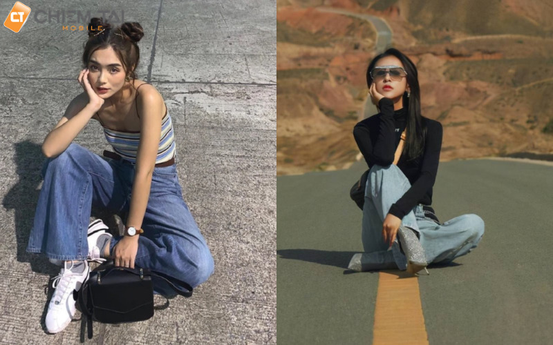 – một chân giấu bên dưới như tư thế ngồi bệt