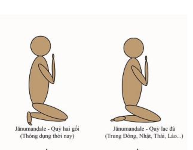 – Ngồi quỳ bát đối xứng hay ngồi quỳ chân lệch : 1 chân quỳ (đầu gối tiếp đất), 1 chân ngồi (bàn chân tiếp đất)