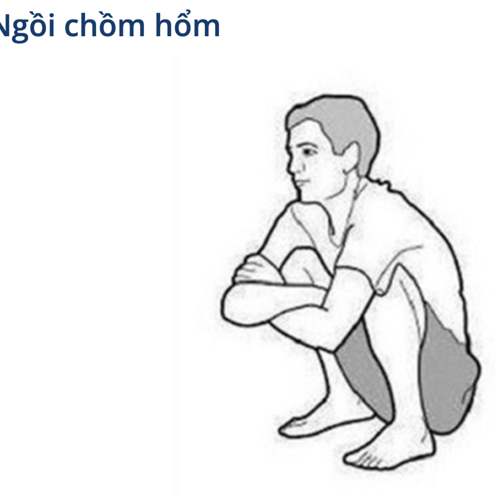 – – Tiếp đất bằng cả bàn chân : ngồi chồm hỗm hay ngồi xổm